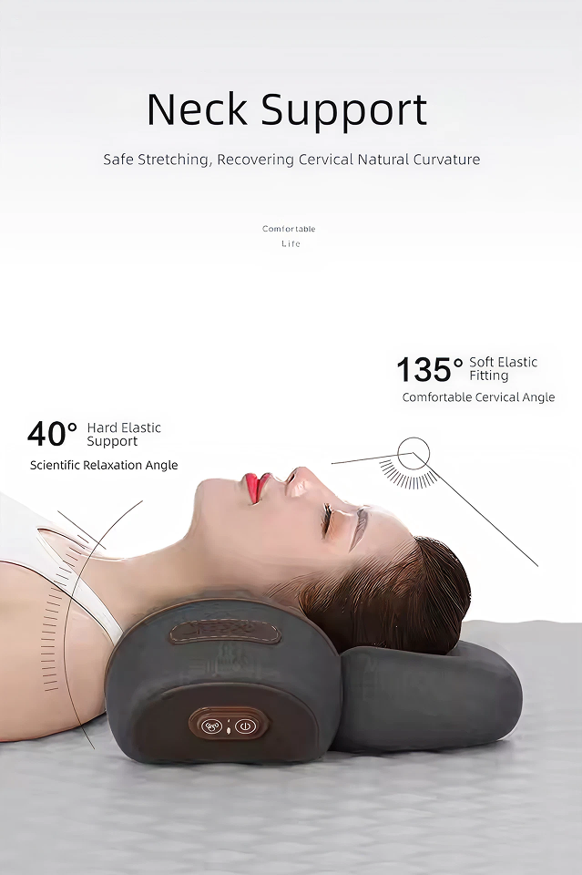 3-in-1 Comfort Design: Combines traction, heat, and massage in one ergonomic pillow for maximum convenience.